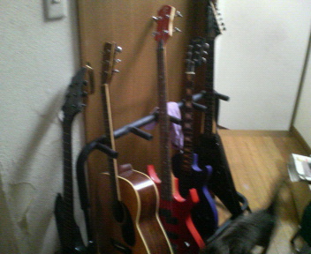 4本のうち実質稼動しているのは奥の殺人ギター1本。